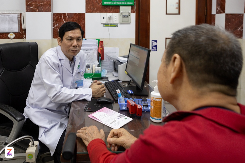 Bác sĩ Đoàn Văn Lợi Em thăm khám cho bệnh nhân. Ảnh: Khương Nguyễn. |