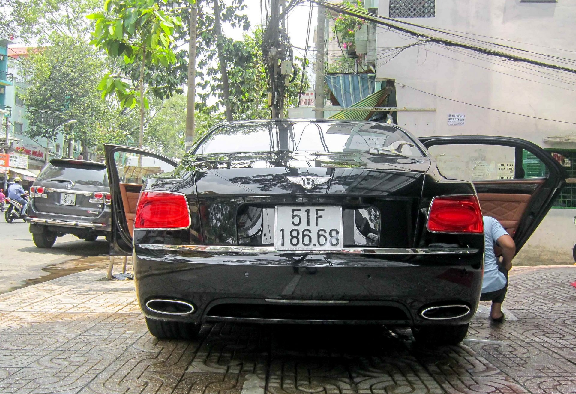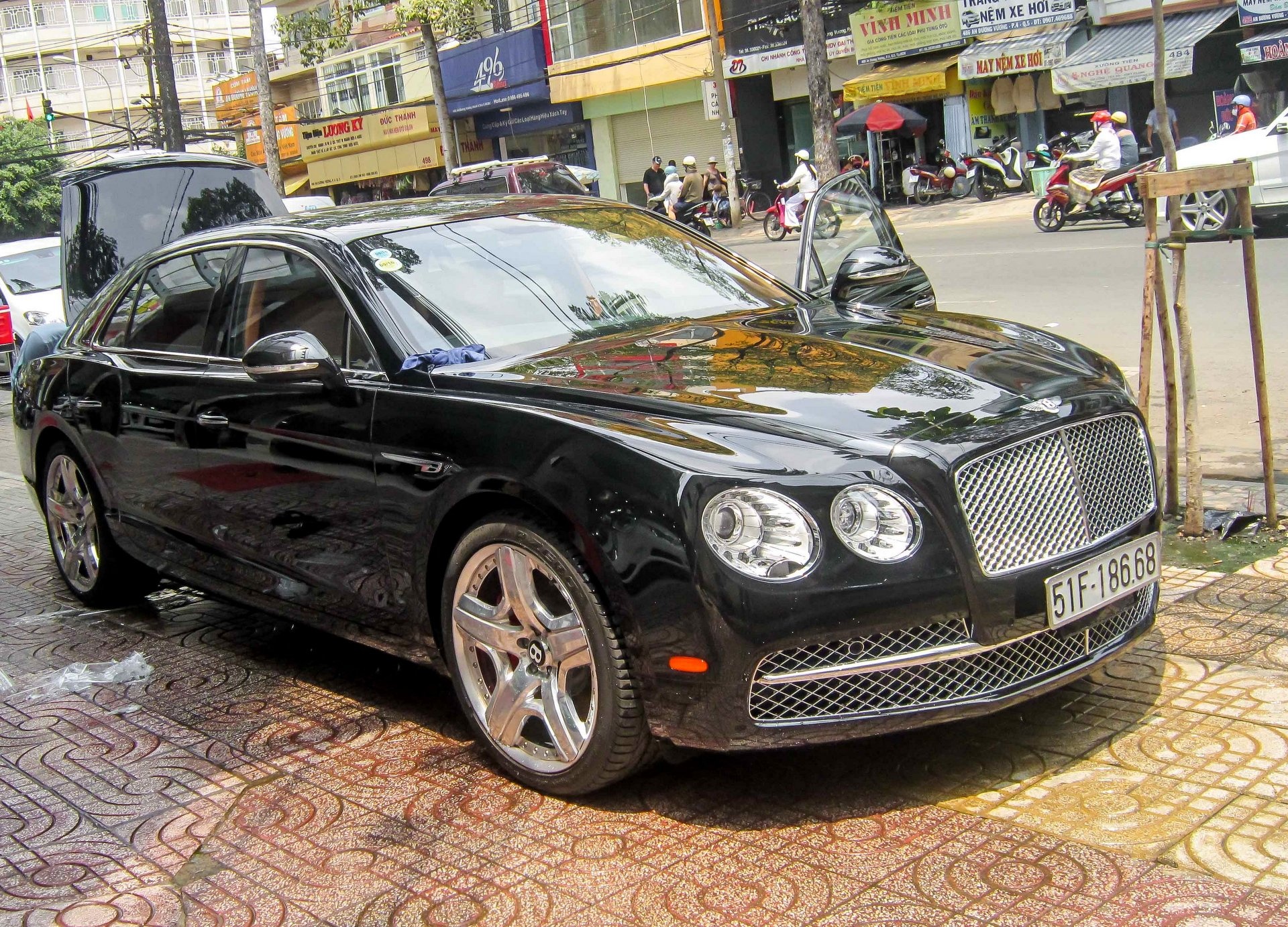 Bentley Flying Spur W12 đời 2014 có giá khoảng 13 tỷ đồng vừa xuất hiện tại TP HCM với biển số cặp 8668, tượng trưng cho "phát lộc - lộc phát", theo quan niệm của người Á Đông.