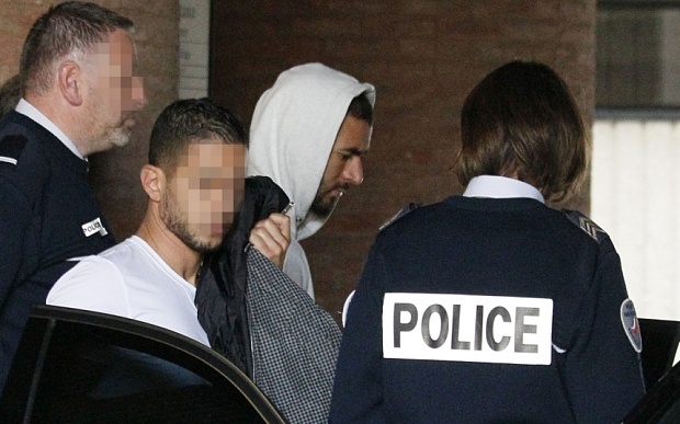 | Kazim Benzema bị áp giải đến Sở cảnh sát ở Versailles (Pháp). Ảnh: Bild |