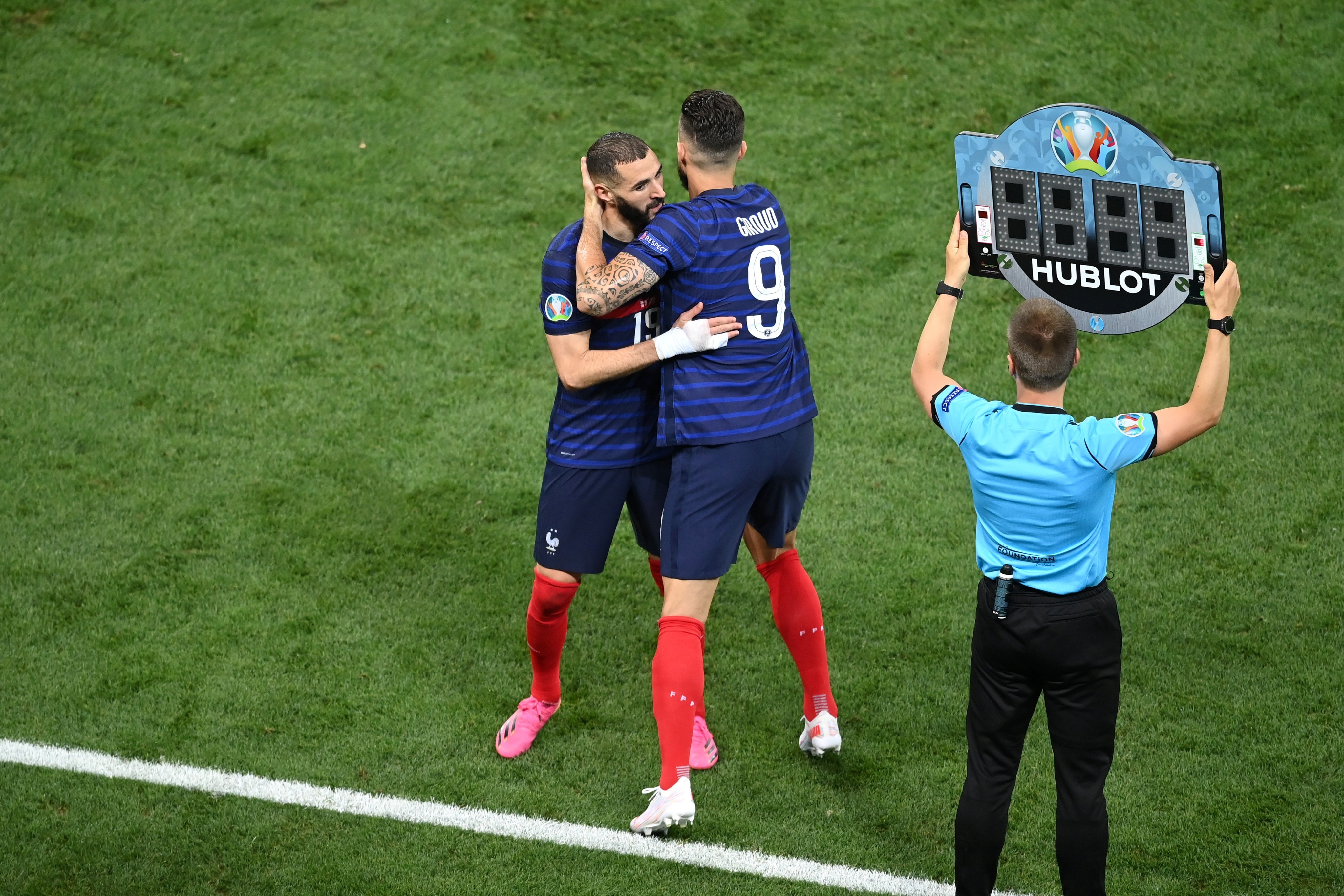 | Anh thi đấu thêm 4 phút trước khi nhường chỗ cho Olivier Giroud. Giroud từng được HLV Deschamps trọng dụng và là nhân tố chủ chốt mang về chức vô địch World Cup 2018 cho tuyển Pháp, nhưng sự có mặt của Benzema đã khiến cầu thủ này mất vị trí. |