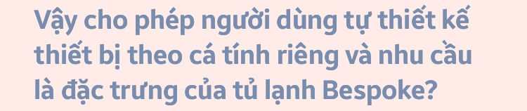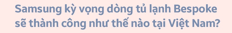 Tại Việt Nam, chúng tôi nhận thấy người dùng cũng mong muốn tạo ra không gian sống theo gu riêng. Dòng tủ lạnh Bespoke hội đủ tiêu chí cả về thiết kế lẫn công năng để họ kiến tạo một căn bếp mơ ước.