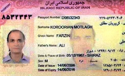 | Hộ chiếu của Farzin Koroorian Motlagh. |