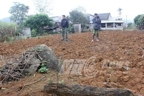 Nói rồi, anh Tuấn dẫn chúng tôi ra sau vườn. Khu vườn rộng mênh mông vừa được cuốc xới. Những khối đá xám lớn đổ ngổn ngang, rõ ràng dấu tích của một ngôi mộ đá.