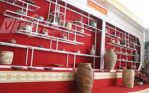 | Cổ vật gốm, sứ thu được trong mộ đá, hiện trưng bày ở Bảo tàng Hòa Bình . |