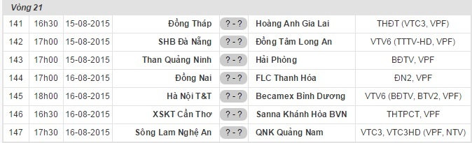 | Lịch thi đấu vòng 21 V.League. |