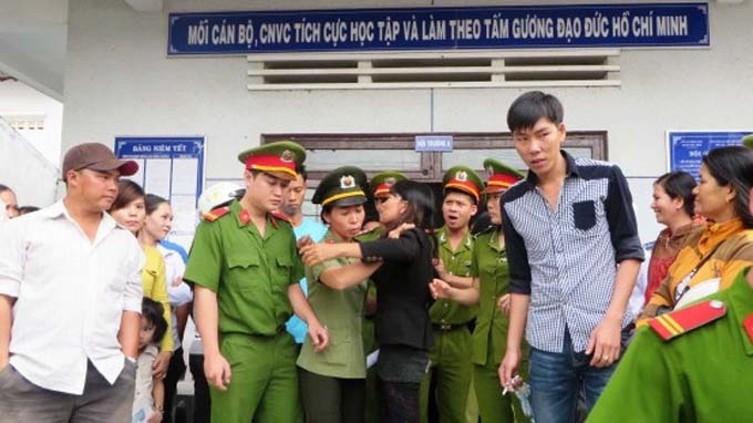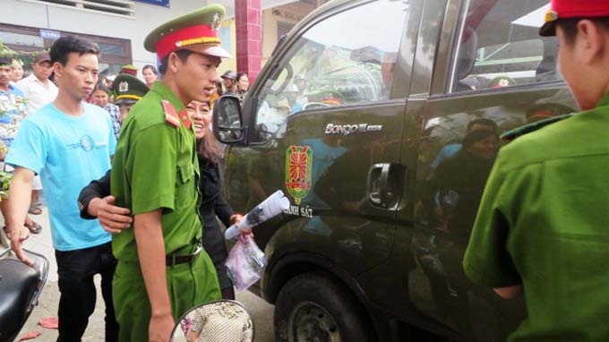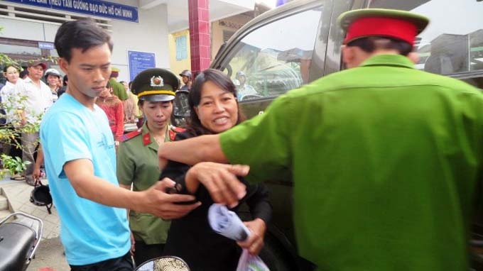 | Lực lượng hỗ trợ tư pháp để cho bà Nguyệt khoảng 15 phút nói chuyện với người thân và luật sư. Bà Nguyệt gửi gắm người thân, hàng xóm giúp chăm sóc con trai nhỏ (7 tuổi) của mình, vì mẹ bị cáo Nguyệt đã già yếu. Các cán bộ công an hỗ trợ tư pháp cũng động viên bị cáo Nguyệt chấp hành về trại tạm giam, vì còn có phiên tòa phúc thẩm sau này. Ảnh: Lực lượng hỗ trợ tư pháp cũng động viên bị cáo Nguyệt còn có phiên phúc thẩm. |