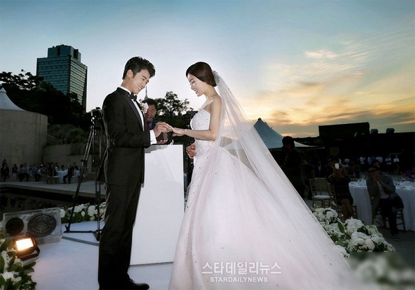 Hạnh phúc mỉm cười với Ahn Jae Wook ở tuổi 43 khi anh rước cô dâu xinh đẹp là ca sĩ nhạc kịch Choi Hyun Joo về dinh. Đám cưới của Ahn Jae Wook và Choi Hyun Joo diễn ra tại khuôn viên ngoài trời của một khách sạn tại Seoul trong không khí rất trang trọng và vui vẻ. Vợ anh, Choi Hyun Joo kém chồng 11 tuổi.