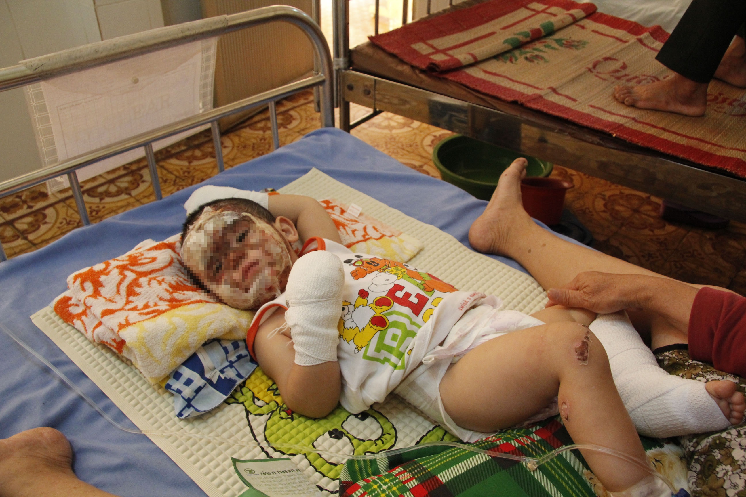 Sau 10 ngày được cấp cứu tích cực, 2 cháu đã qua cơn nguy kịch, sức khỏe đã dần hồi phục. Tuy nhiên, khắp vùng mặt, tay, chân bị băng kín. Thi thoảng 2 cháu lại khóc ré lên vì đau rát, chứng kiến cảnh này, nhiều người đã không khỏi xót xa.