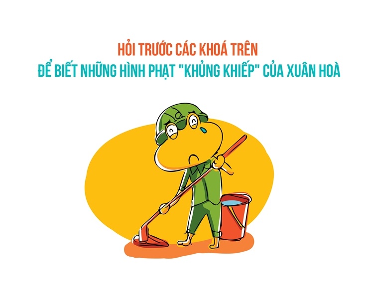 | Hình phạt tại môi trường quân sự là mối lo ngại khá lớn với những cô cậu sinh viên từng phải trải qua. Ngoài việc hít đất, đứng phơi nắng... các bạn còn phải lau dọn vệ sinh khắp khu vực sống. Bởi vậy, trước khi lên đường, sinh viên hãy nhớ học hỏi kinh nghiệm từ các anh chị đi trước. |