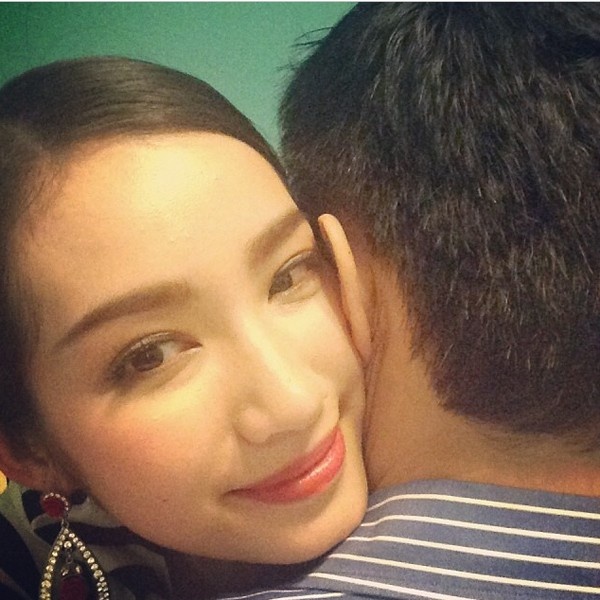 | Hoa hậu Trúc Diễm đăng lên Instagram cá nhân khoảnh khắc ôm đằng sau bạn trai. |