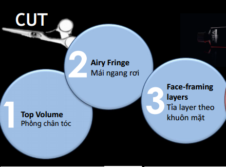 Trước tiên, bạn nên tới nhờ chuyên gia tư vấn tạo kiểu tóc cho gương mặt phù hợp với V-look, gương mặt chữ V thời thượng. Từng bước kỹ thuật cắt sẽ theo các bước sau:
