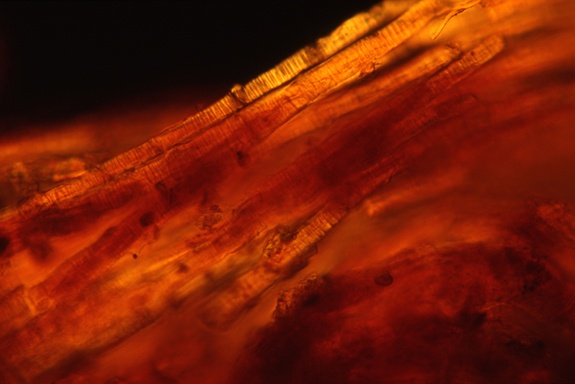 | Hình ảnh sợi vải lanh khi phóng đại 150 lần. |