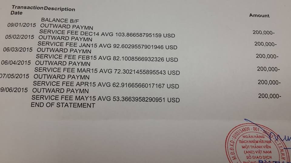 Ngoài ra, hàng tháng, ngân hàng cũng gửi sao kê điện tử miễn phí cho khách hàng theo địa chỉ email đã đăng ký. Theo các điều khoản và điều kiện chung của ANZ, trong vòng 15 ngày kể từ ngày nhận sao kê, khách hàng có quyền khiếu nại hoặc thông báo cho ngân hàng về các sai sót nếu có. Bên cạnh ANZ, một số ngân hàng quốc tế khác cũng áp dụng mức phí 200.000 đồng đối với những tài khoản dưới 50 triệu đồng.