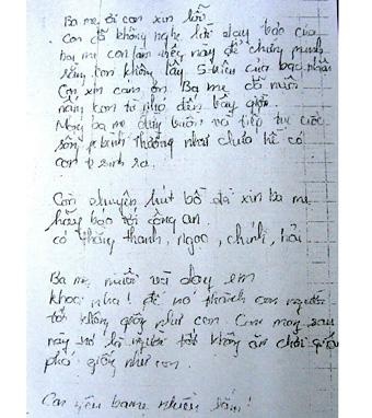 | Thư tuyệt mệnh của Lê Hoàng Triệu Khang. |
