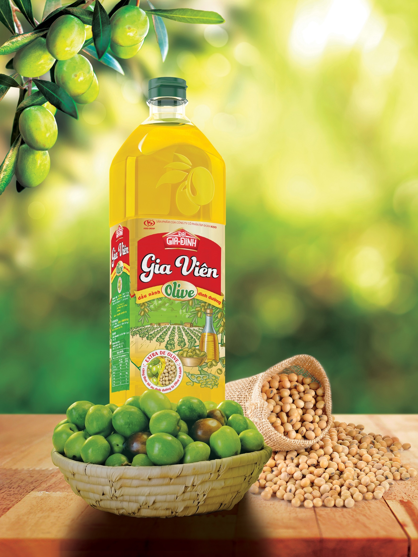 Dầu nành Olive Dinh dưỡng Đại Gia Đình Gia Viên là sản phẩm mới do Tập đoàn KIDO (tiền thân là Tập đoàn Kinh Đô) phối hợp cùng trường ĐH Công nghiệp Thực phẩm TP HCM nghiên cứu và phát triển. Đây là dầu ăn cao cấp có chứa nguồn dinh dưỡng dồi dào gồm chất chống oxy hóa tự nhiên, omega 9, 6, 3 và vitamin E được chiết xuất từ trái Olive tươi vùng Địa Trung Hải. Với mức giá phù hợp, sản phẩm đang được rất nhiều bà nội trợ Việt Nam lựa chọn. |