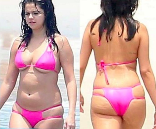 Cơ thể mũm mĩm, tăng cân thấy rõ của Selena Gomez khi cô diện bikini trên biển. Ảnh: Celebdirtylaundry. |