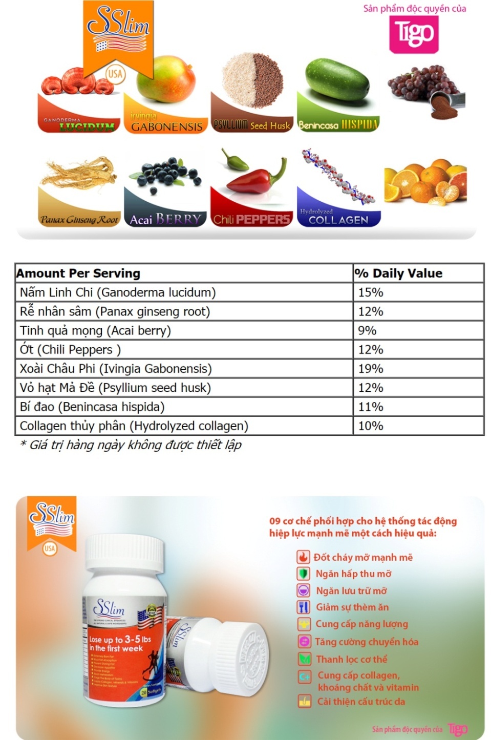Tigo Health and Beauty là đơn vị phân phối độc quyền sản phẩm giảm cân SSlim.