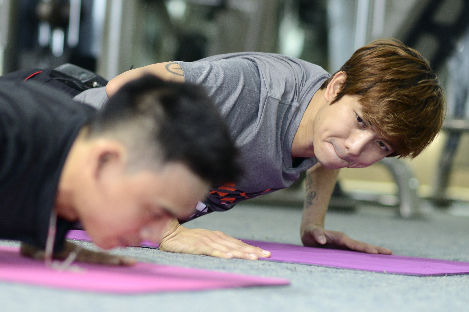 Sau khi chạy bộ, Tim cùng HLV tập bài Bật kết hợp với Chống đẩy. Đây là bài tập cho toàn bộ cơ thể, giúp tăng sức mạnh, sức bật, bền và có tác dụng đốt calo.
