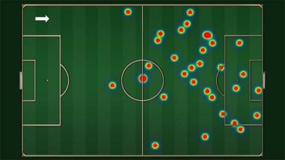 | Biểu đồ mô tả tầm hoạt động của Torres trong trận đấu giữa Chelsea và Man City. |