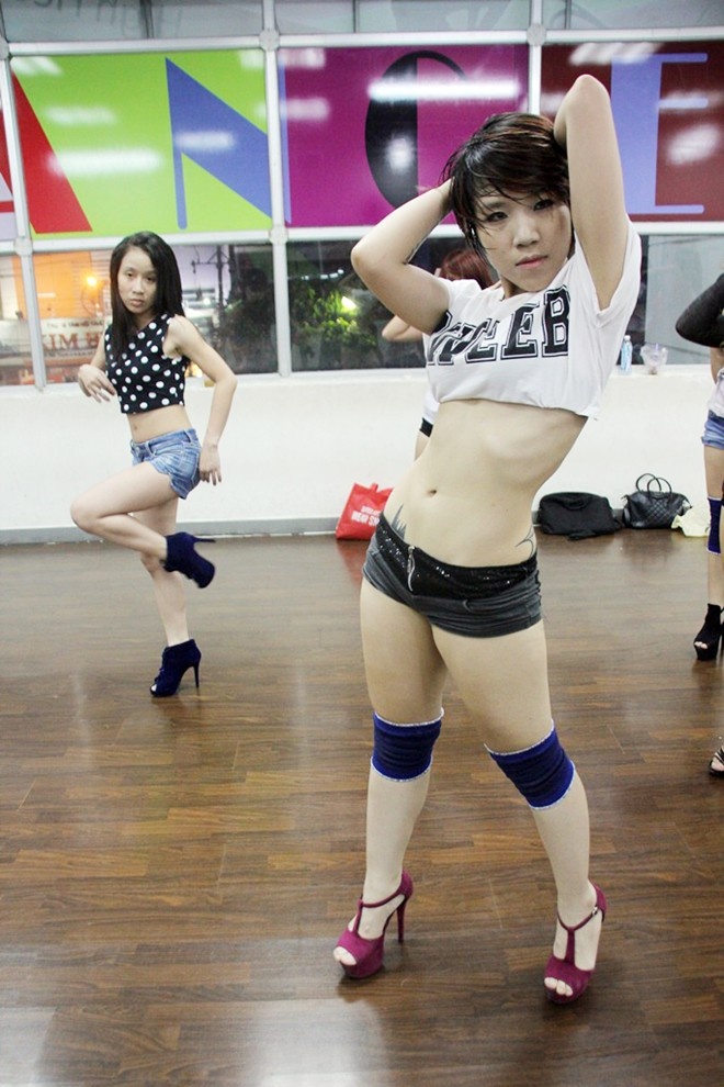 Cô chia sẻ: " Đối với những chị em muốn cải thiện vóc dáng một cách nhanh chóng đồng thời rèn luyện sự dẻo dai và thể lực cơ thể thì múa cột, strip dance là sự lưa chọn đúng đắn". Không chỉ là một bộ môn nghệ thuật hấp dẫn, múa cột còn có rất nhiều tác dụng. Khi tập luyện, cơ bắp vùng vai, ngực , bụng, mông và đùi phải hoạt động hết công suất với tất cả trạng thái từ co, giãn nhanh chậm cho đến liên tục hoặc ngắt quãng. Ảnh: Như Quỳnh