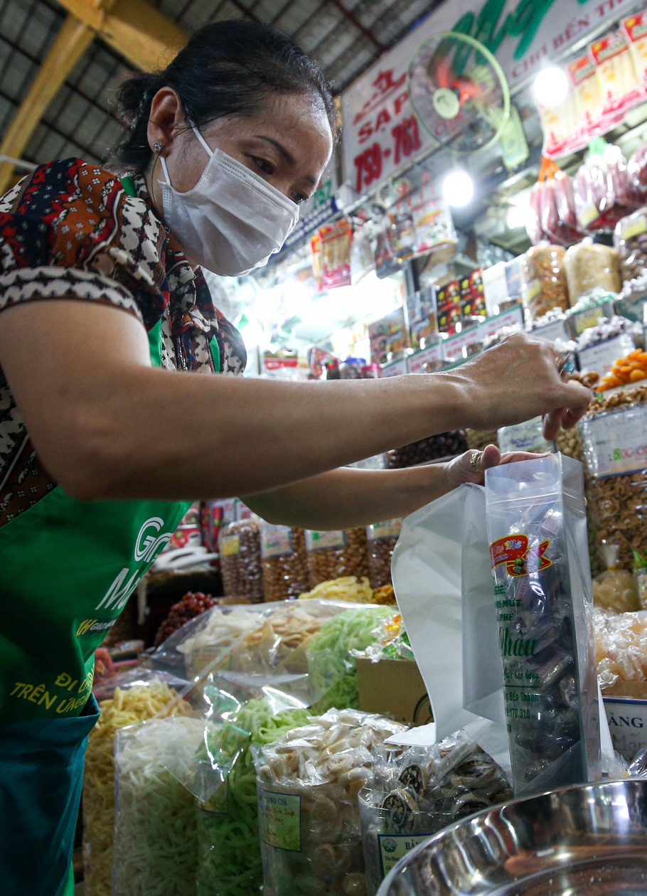 | Thi thoảng, tôi phải chờ đơn hàng một lúc, nhưng không sao vì các chủ sạp hàng chợ thường rất vui vẻ và niềm nở. Nhiều cô chú nói rằng GrabMart đã giúp sạp bán được nhiều hàng hơn, trong thời đại cái gì cũng “online” hết. |