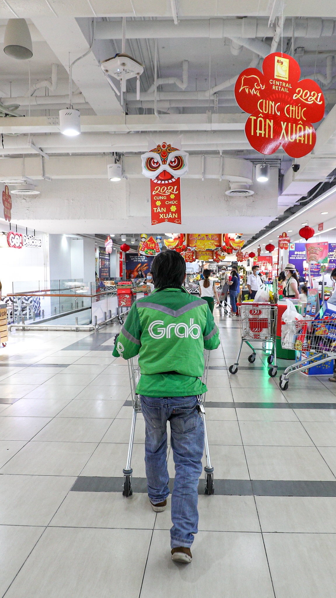 | Thông thường, tôi khá bận rộn với dịch vụ chở khách, giao hàng, nhưng gần Tết, dường như ai cũng bận bịu hơn, do đó dịch vụ GrabMart cũng “nổ cuốc” nhiều hơn. |