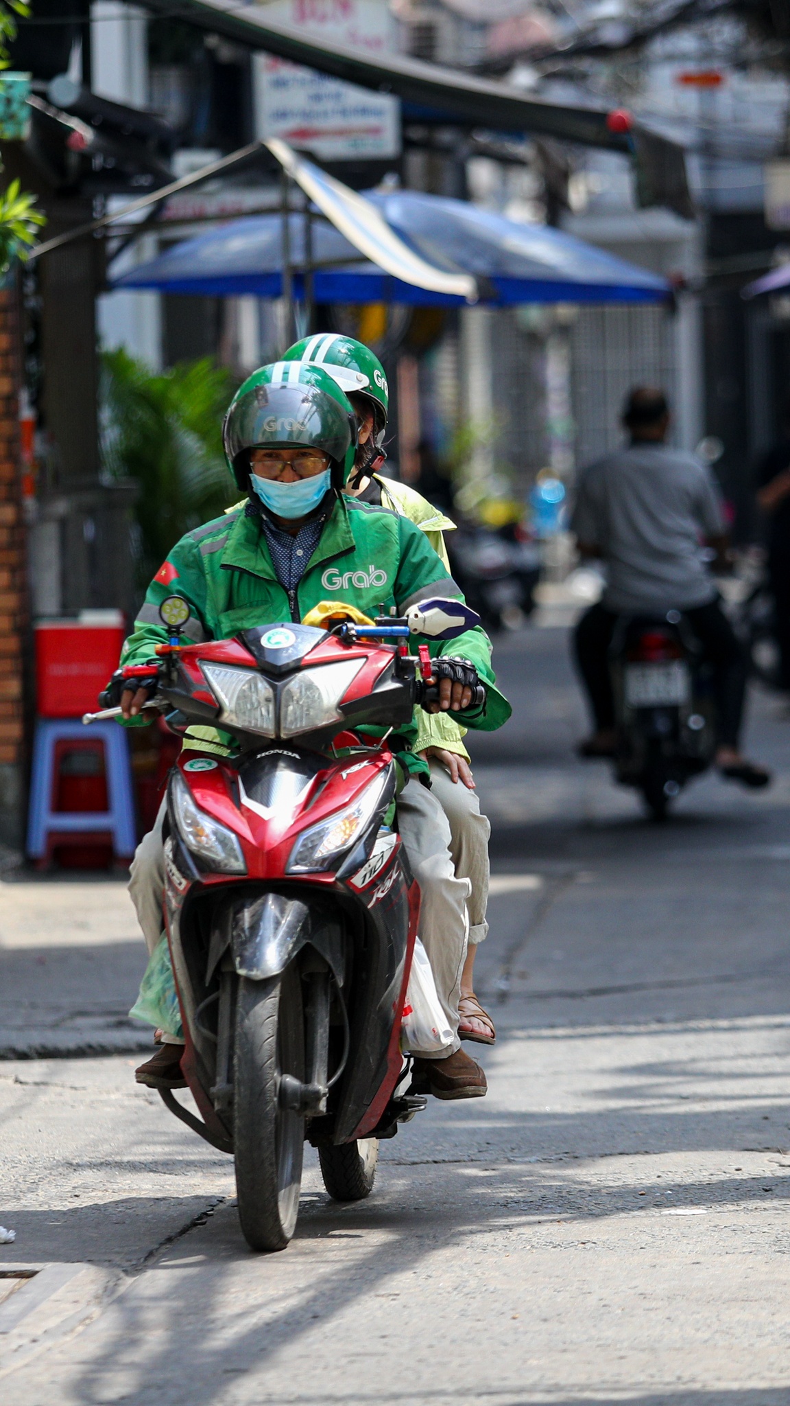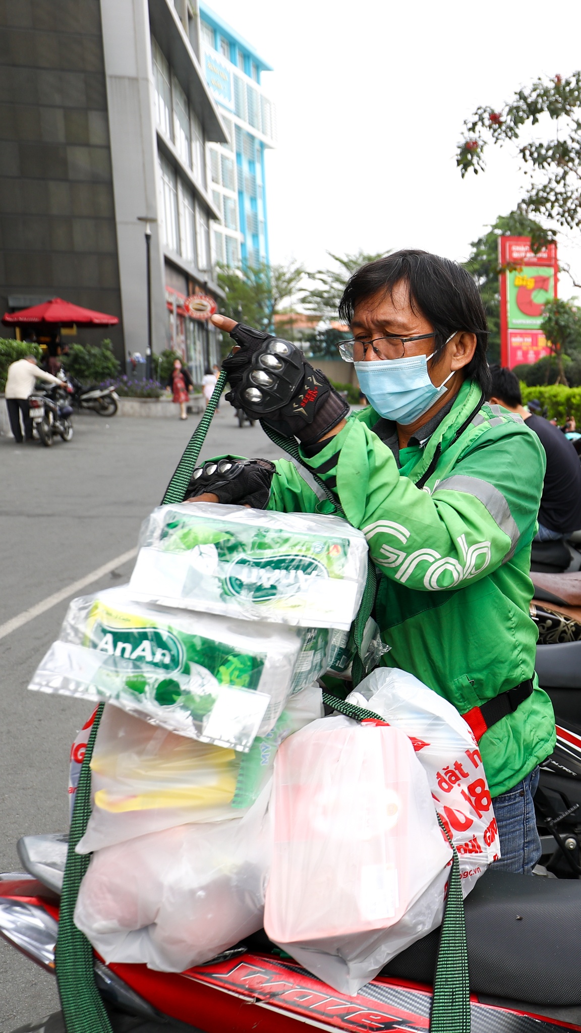 | Sau buổi sáng giao hàng bận rộn, tôi bắt được vài cuốc GrabBike. Thông thường, giờ cao điểm GrabMart sẽ vào buổi sáng hoặc chiều, gần bữa ăn để các bà nội trợ có thời gian chuẩn bị. |
