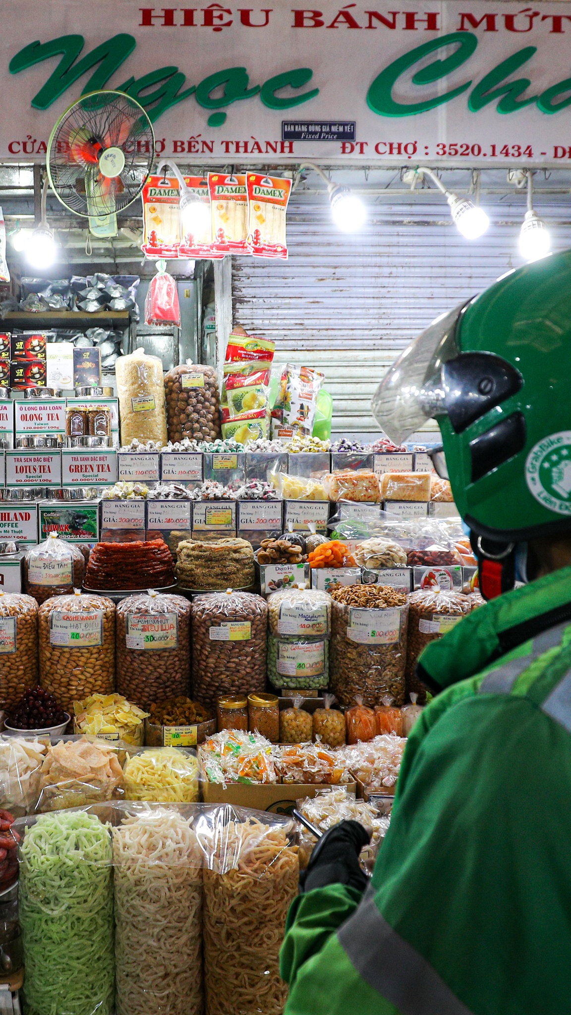 | Chỉ mất vài phút, tôi đã có thể tìm được sạp hàng. Với các đơn hàng nhiều sạp, sẽ có một người “gom đơn” và giao cho tài xế. Lúc này, tôi sẵn dịp tìm hiểu được nhiều món ngon vật lạ và ngắm chợ búa ngày cuối năm. |