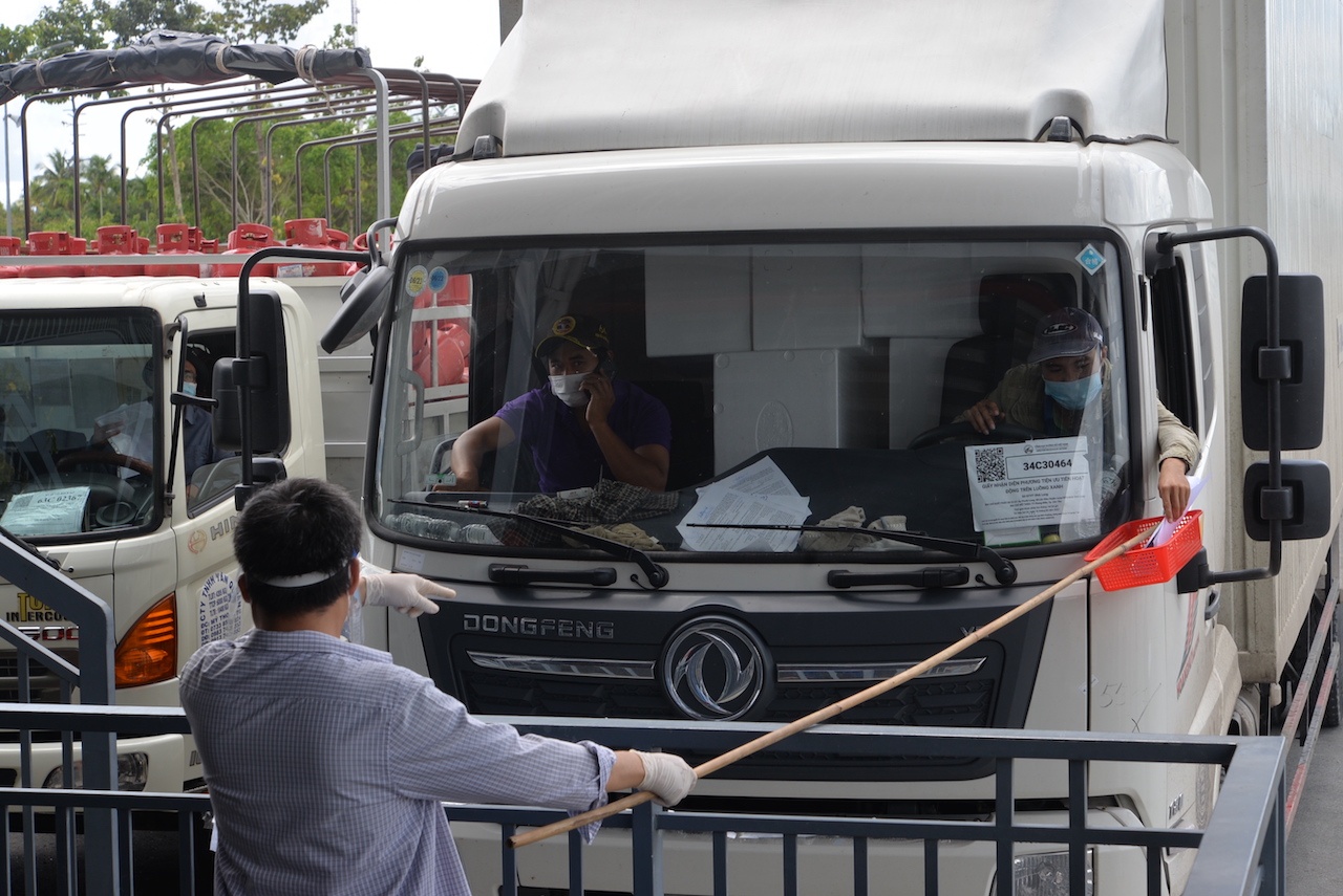 “Xe có 'luồng xanh' đi các tỉnh được nhưng tới Cần Thơ chưa có đăng ký trước và không có giấy Sở Công Thương cấp nên chưa được vào trung tâm”, tài xế này nói.