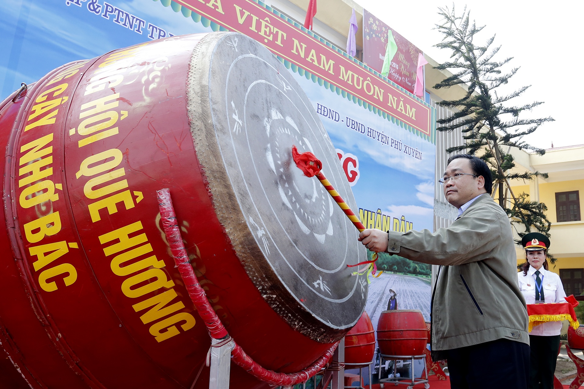 | Bí thư Thành uỷ Hà Nội đánh trống khai mở vụ xuân. |