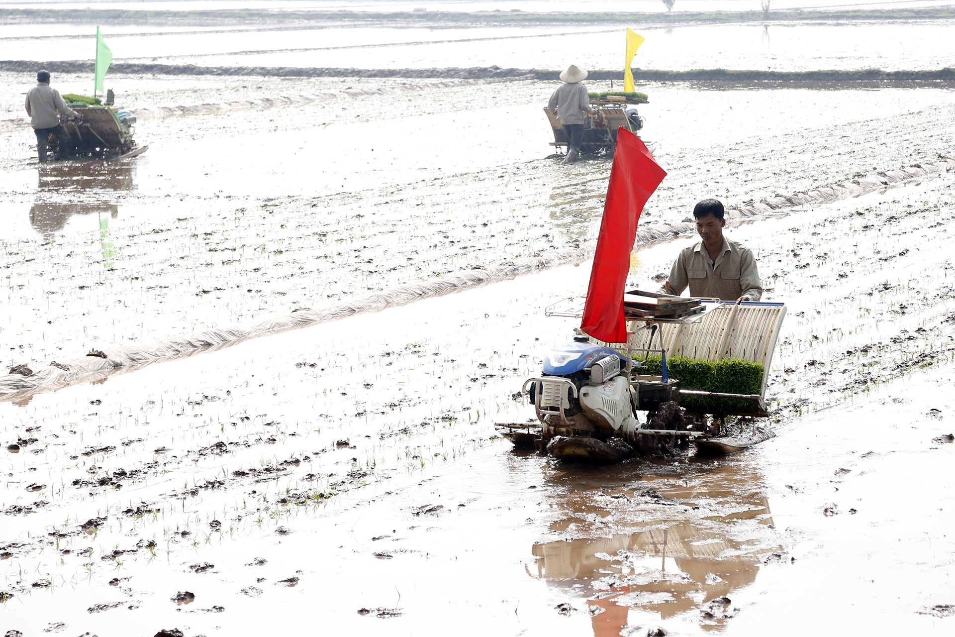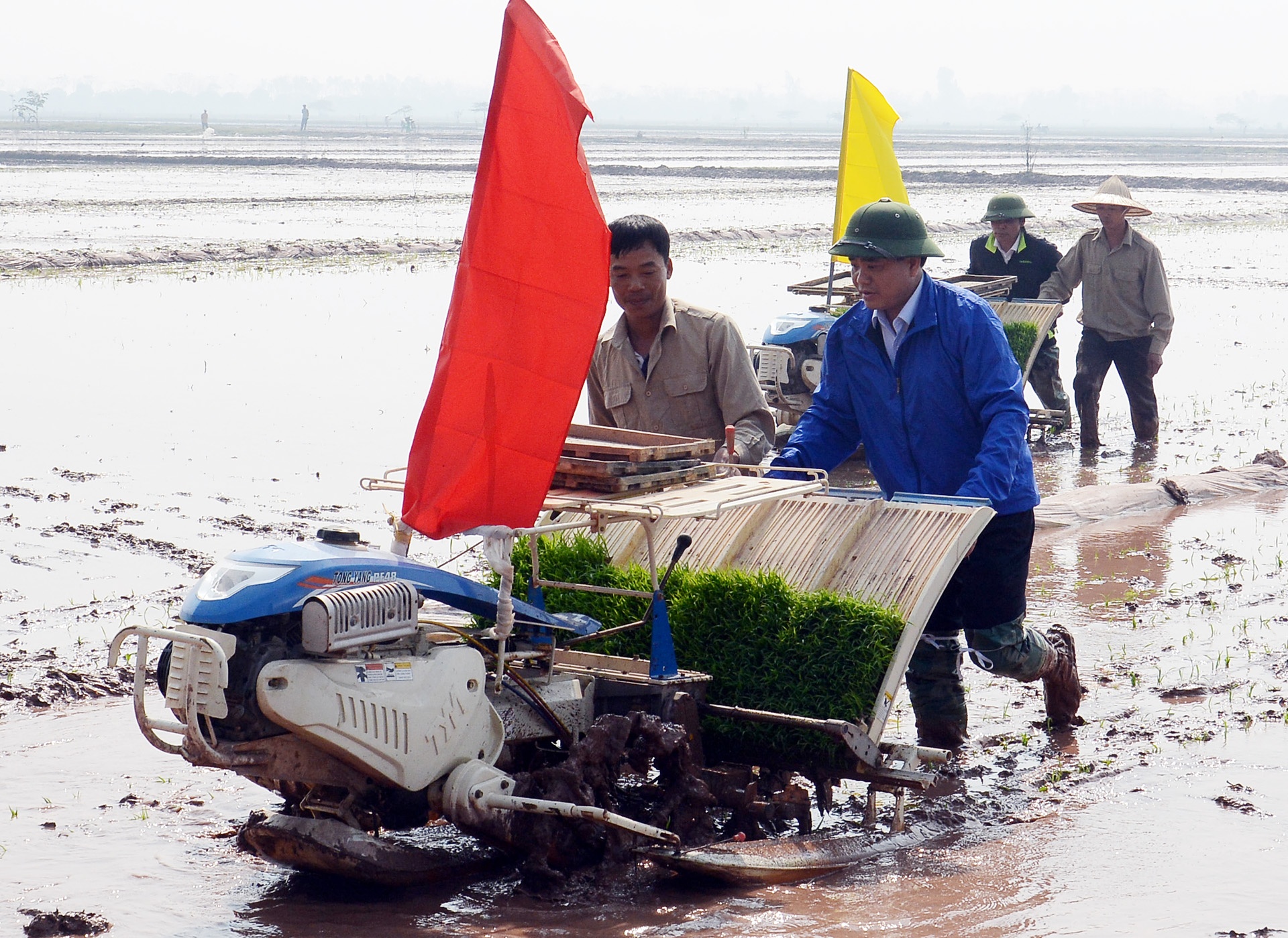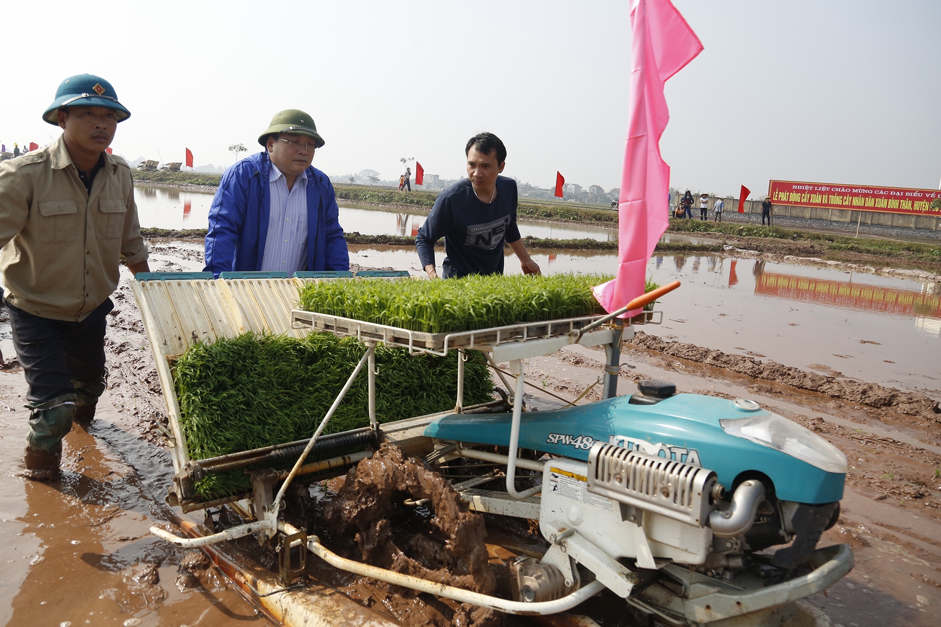 | Sau khi khai mạc, người dân xã Nam Triều (huyện Phú Xuyên) bắt đầu gieo cấy vụ xuân. |
