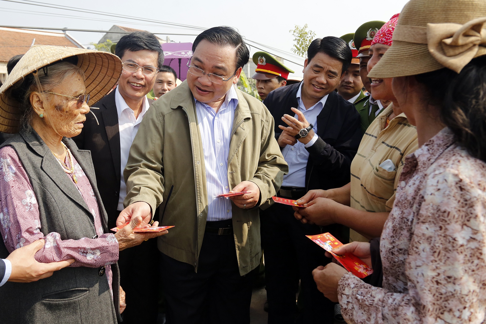 | Người đứng đầu Đảng bộ thành phố Hà Nội mừng tuổi người dân. Chủ tịch UBND TP Hà Nội Nguyễn Đức Chung cũng tham gia các hoạt động này. |