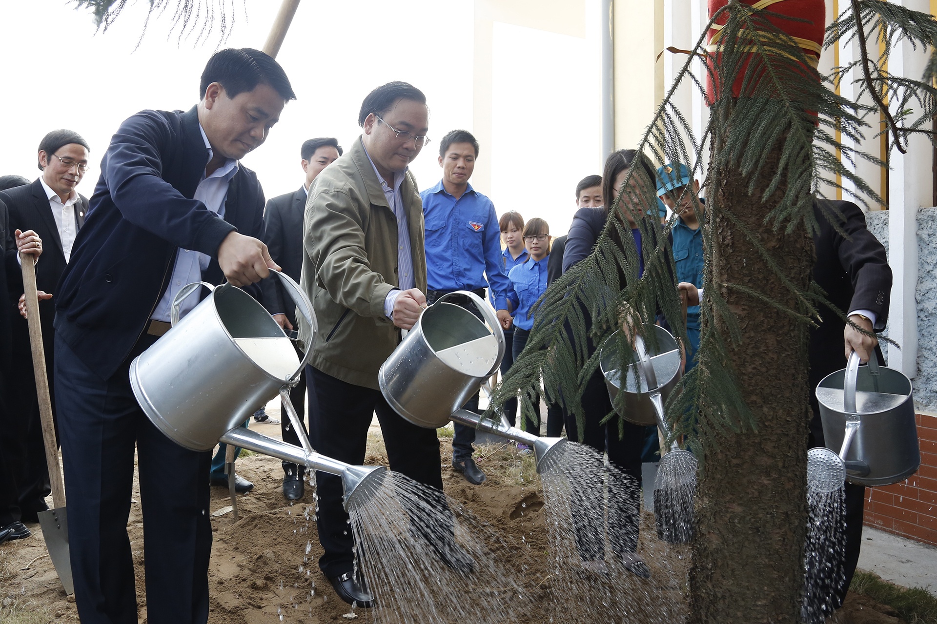 | Bí thư và Chủ tịch Hà Nội cùng trồng cây lưu niệm tại địa phương. |