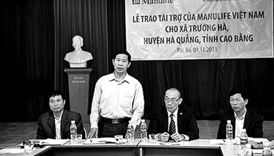 | Ông Lãnh Đức Dũng, Bí thư Huyện ủy Hà Quảng, Cao Bằng (người đứng). |