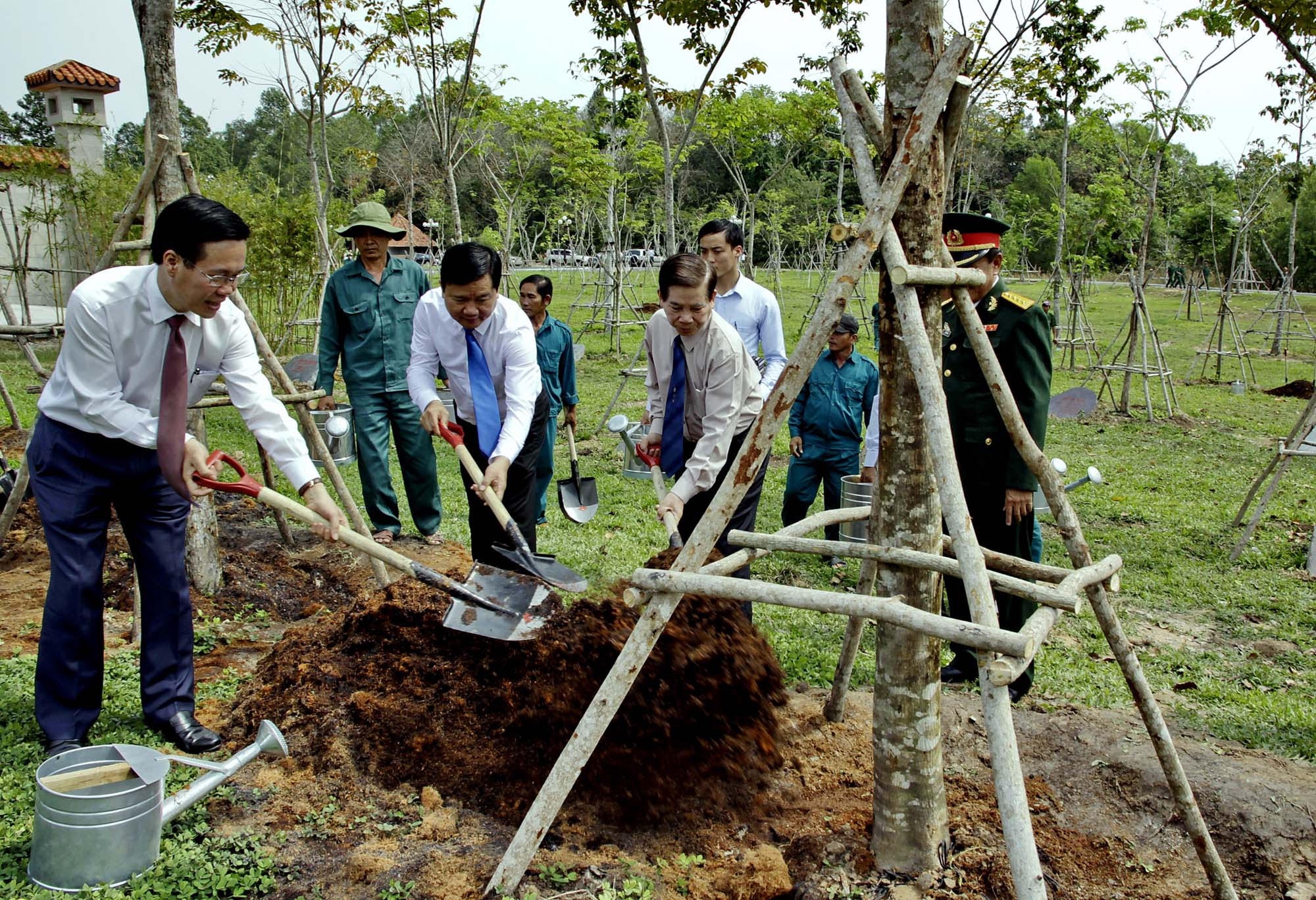 | Đoàn đại biểu trồng cây lưu niệm. Ảnh: T.C. |