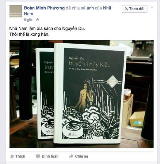Nhà văn Đoàn Minh Phượng là một trong những người chia sẻ đầu tiên về bìa cuốn sách Truyện Thúy Kiều. Bà tỏ ra thất vọng với "bộ mặt" của một tác phẩm nhẳm kỷ niệm 250 năm ngày sinh của thi hào Nguyễn Du. Trên trang cá nhân, bà viết: “Nhã Nam làm bìa sách cho Nguyễn Du. Thôi thế là xong hẳn”.