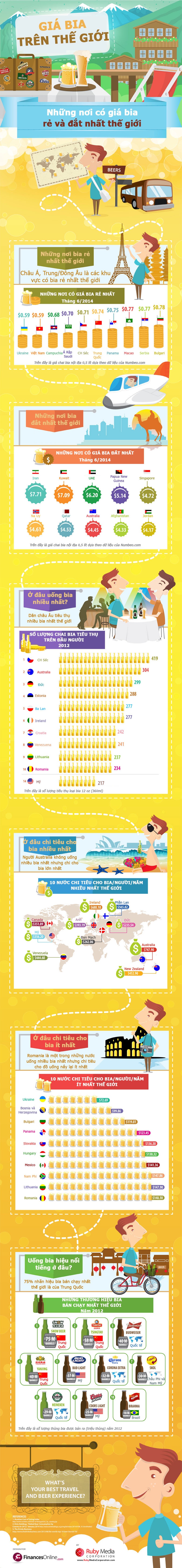 Cùng với Ukraine, Việt Nam có giá bia rẻ nhất thế giới, trong khi đó những nơi bia đắt nhất là Iran, Kuwait, UAE.