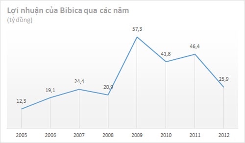 | Biểu đồ lợi nhuận của Bibica từ năm 2005 đến 2012. |
