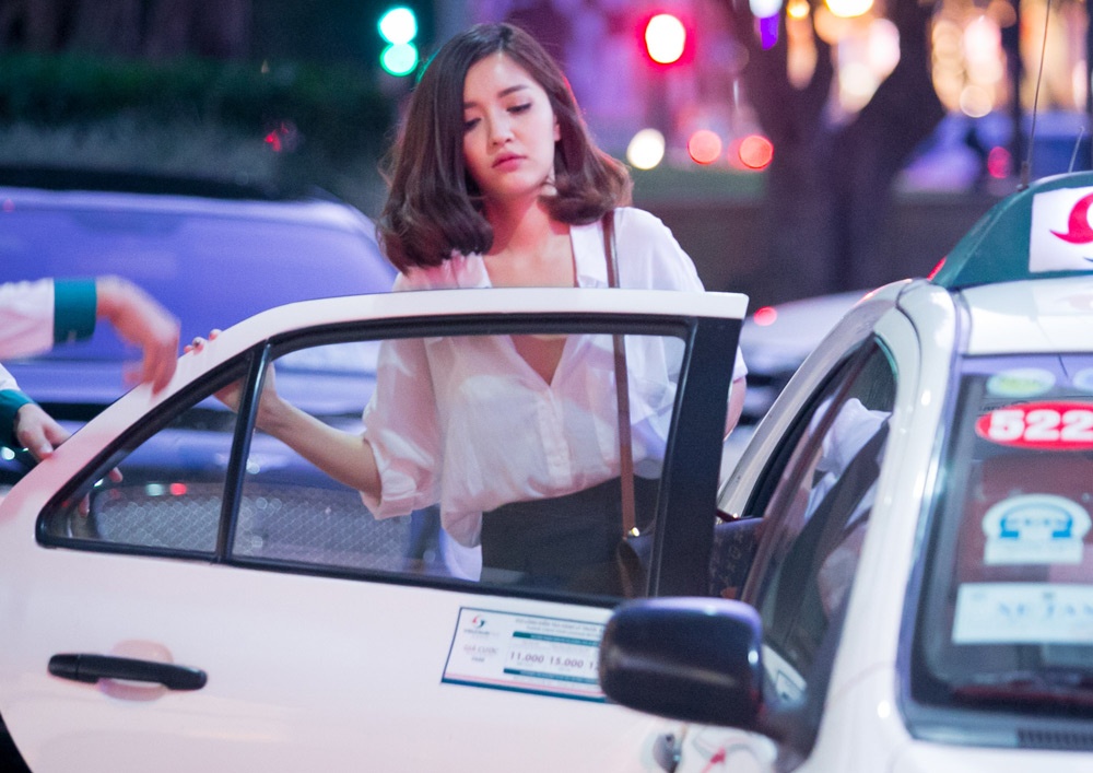 | Cô bắt taxi ra về sau cuộc hẹn hò vui vẻ. |