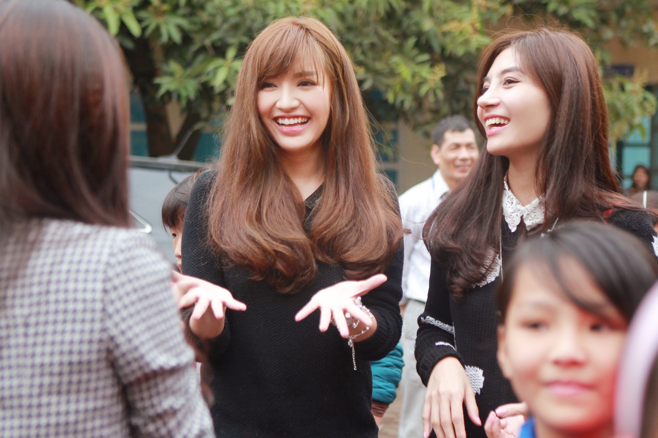 Bích Phương nhí nhảnh cùng các em nhỏ chụp ảnh kỷ niệm.