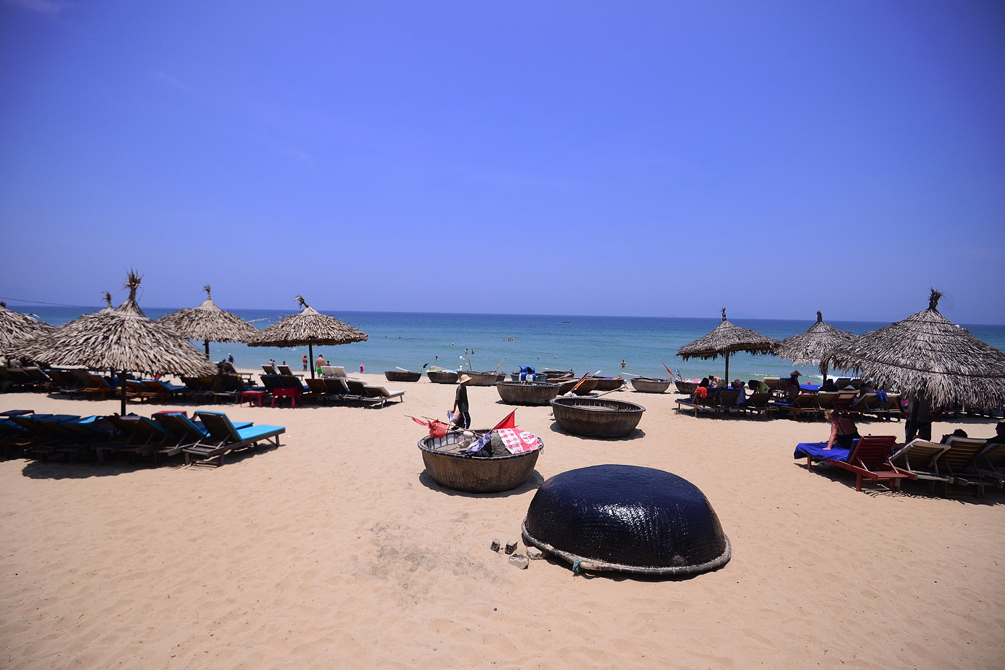 Hàng trăm chiếc chòi được dựng trên bãi cát. Đây là địa điểm lý tưởng để tắm nắng...