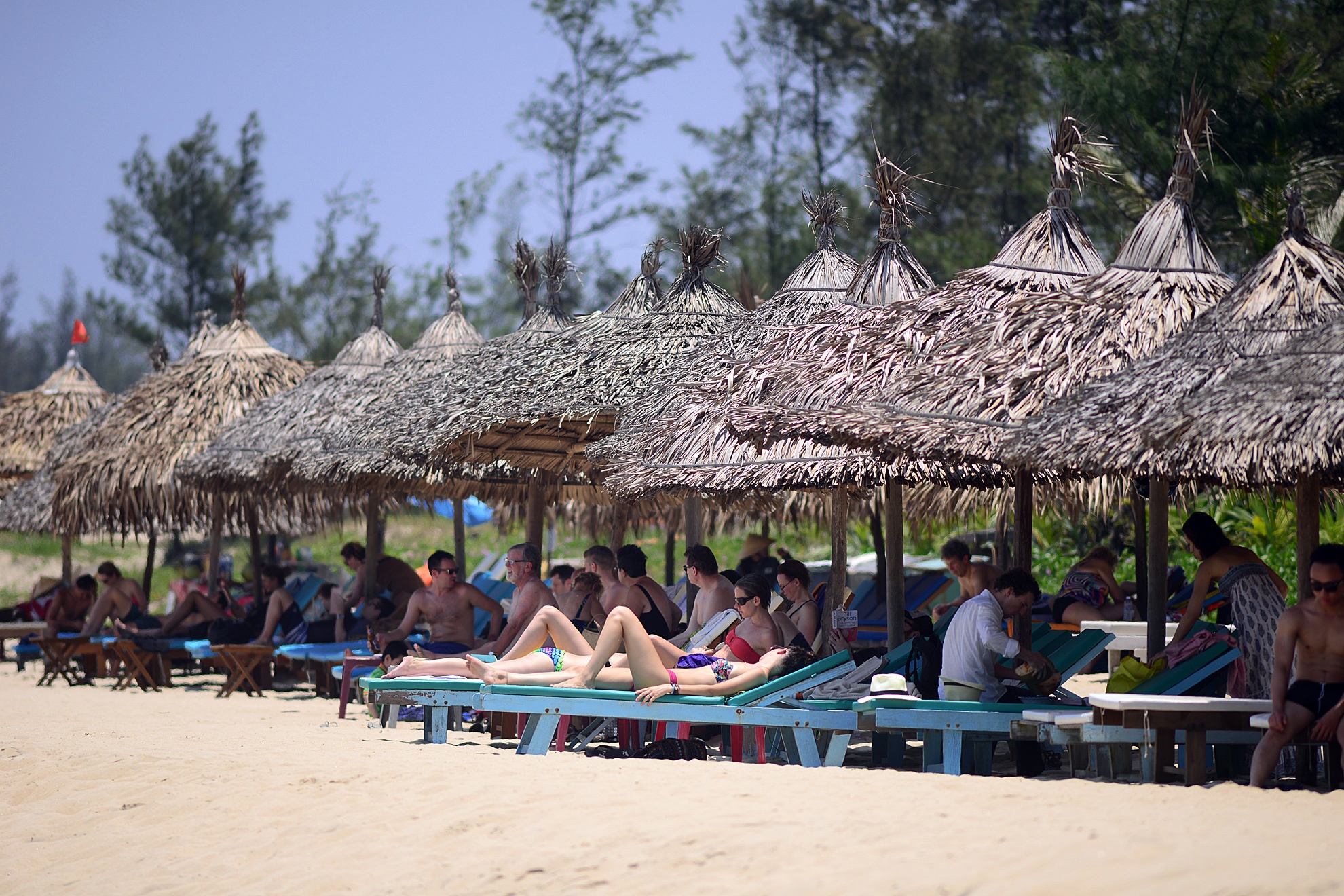 | Nhiều khách quốc tế đã lựa chọn bãi biển này là điểm đến không thể bỏ lỡ khi đến thăm Hội An. Theo người dân sống tại đây, trên 50% khách đến với An Bàng là khách quốc tế. "Họ rất thích vì sóng vỗ nhẹ, nước trong xanh và nắng quanh năm", một người kinh doanh ăn uống tại An Bàng cho biết. |