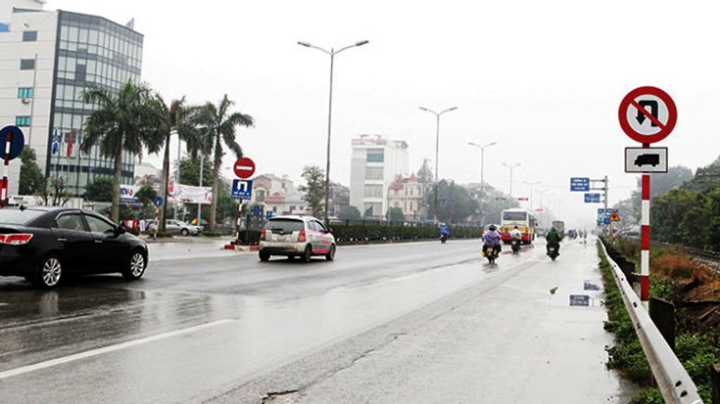Tại đây, biển báo cho phép quay đầu xe được cắm ở dải phân cách giữa với dòng chữ “chỗ quay xe” khá rõ, song dưới dòng chữ này có dòng chữ nhỏ ghi cụ thể cho phép xe con, xe máy, xe đạp quay đầu. Còn ở lề phải chiều đường Hà Nội đi Hải Phòng cắm biển cấm xe tải quay đầu.