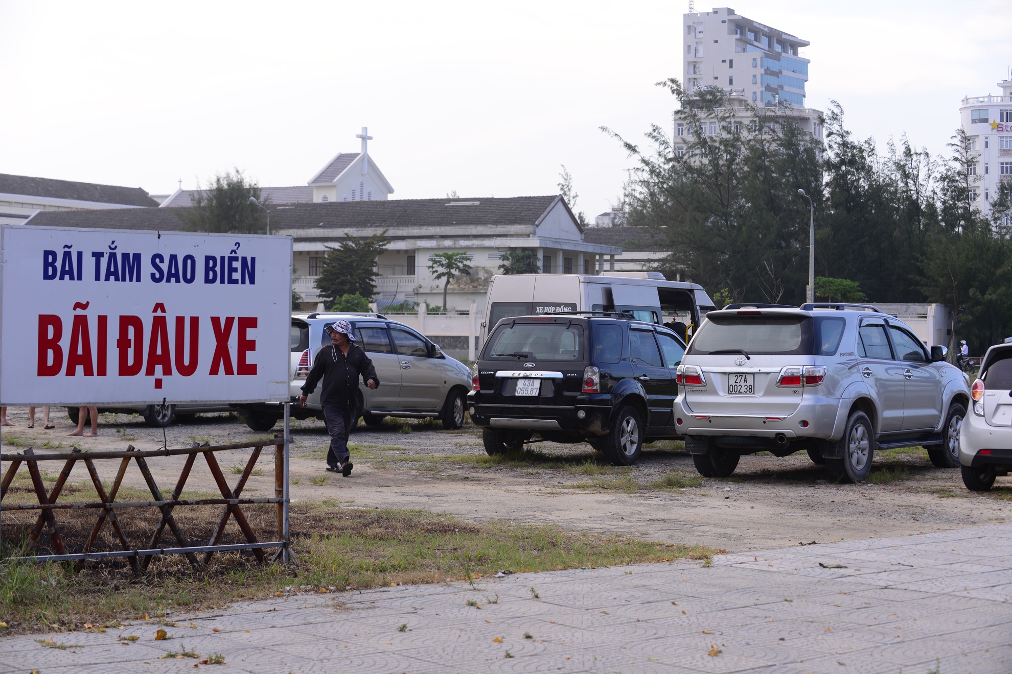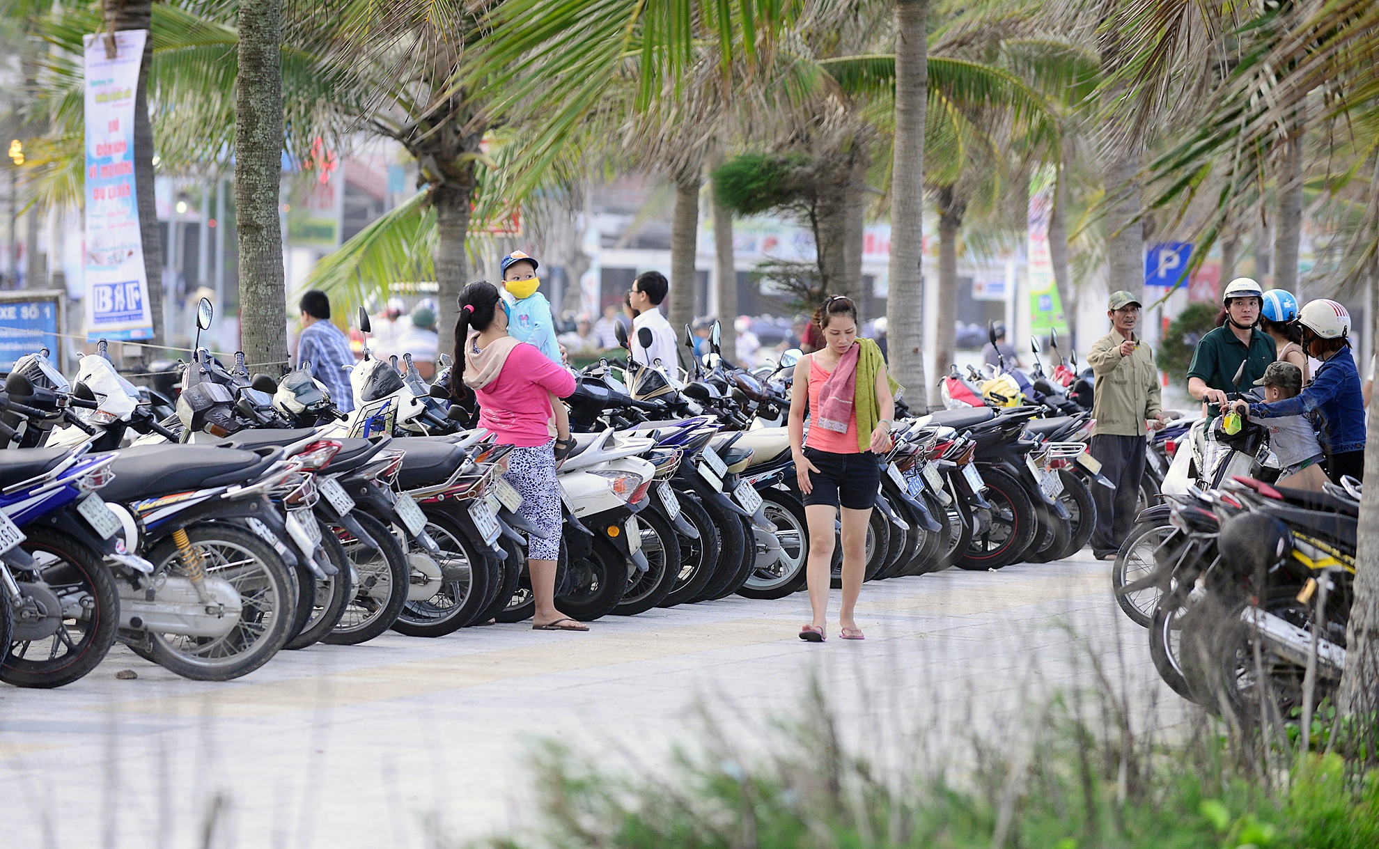 | Bãi đỗ xe máy vào các khu tắm không còn một chỗ trống. |