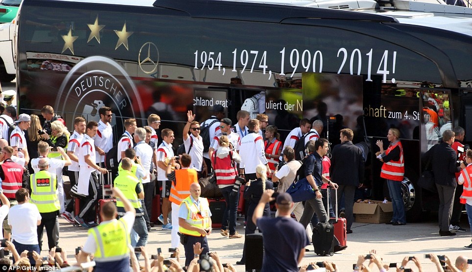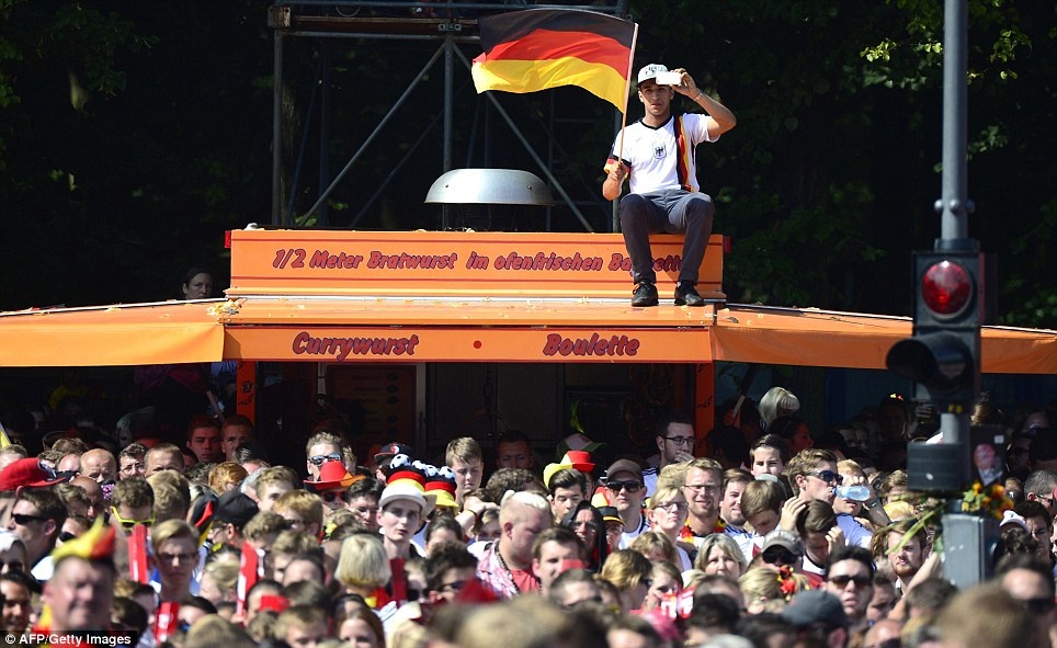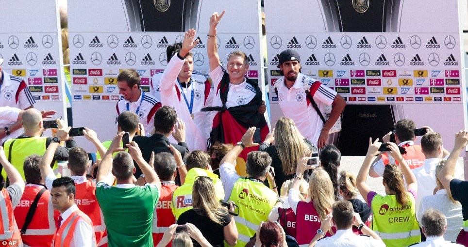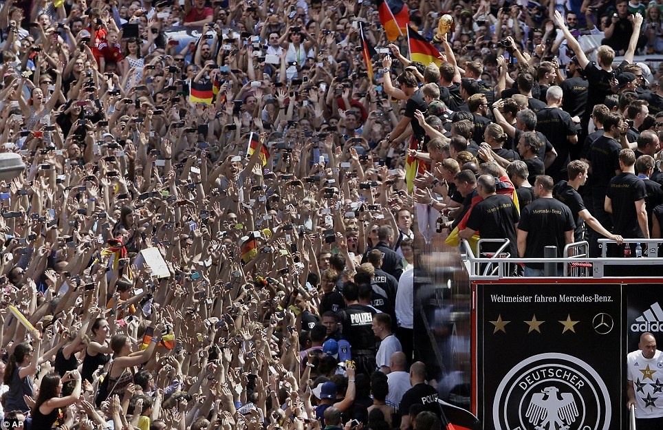 Hơn nửa triệu CĐV Đức đã chờ đợi hàng giờ đồng hồ tại Berlin, cũng như xung quanh cổng chào Brandenburg để đón các cầu thủ ĐTQG trở về sau chức vô địch World Cup tại Brazil.