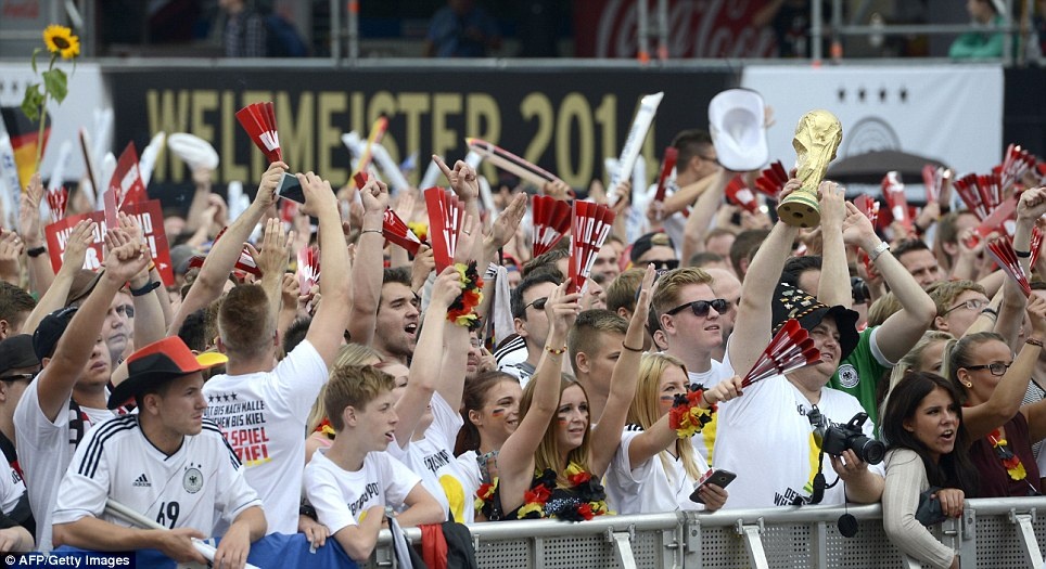 Ngay từ sáng sớm hàng trăm CĐV đã tập trung tại Berlin để chào đón các cầu thủ Đức giành chiến thắng tại World Cup 2014 trở về. Ước tính có hơn 500.000 người ra đường ăn mừng chức vô địch cùng cầu thủ Đức.