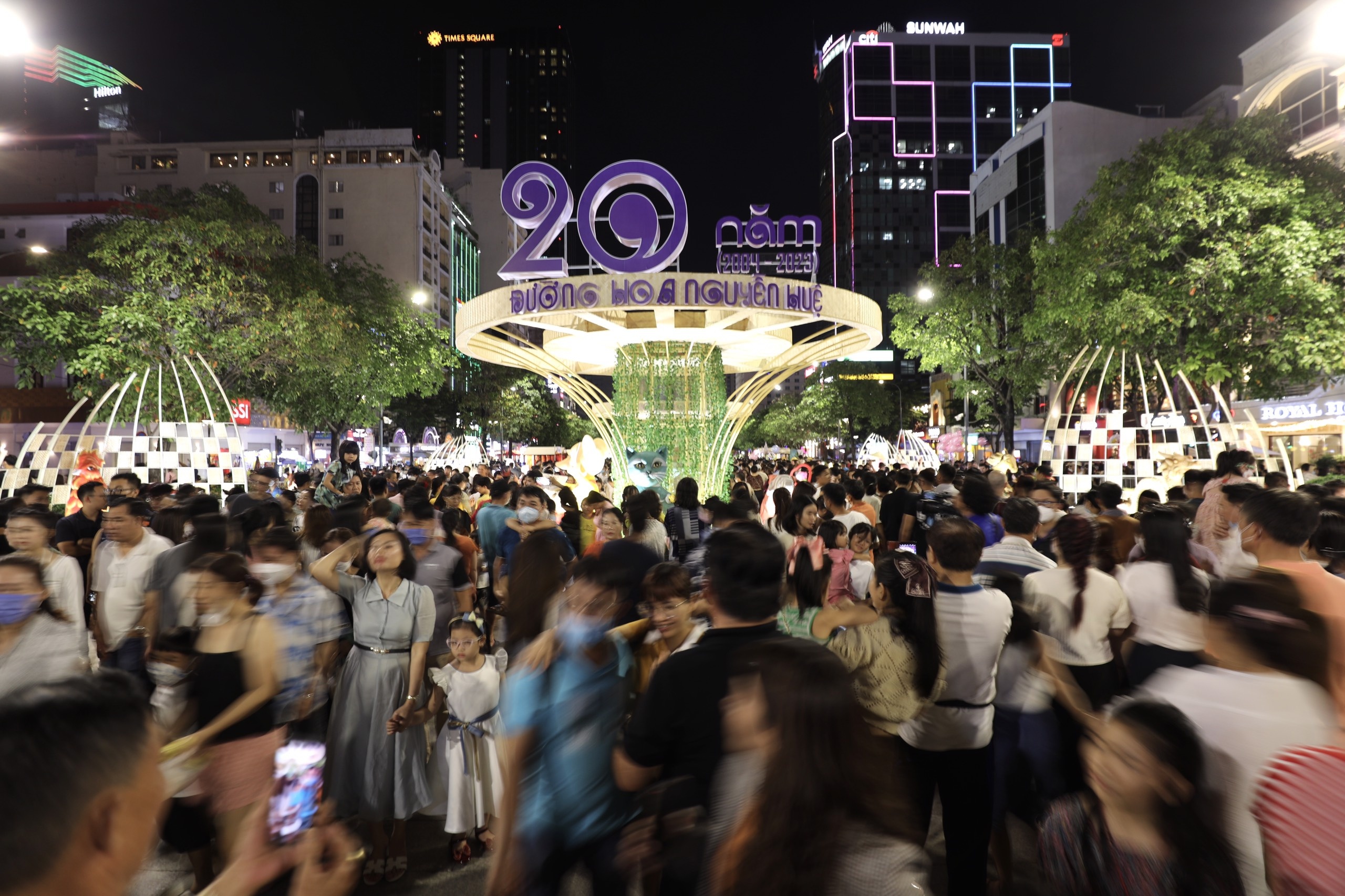 | Hơn 19h ngày 19/1, đường hoa Nguyễn Huệ Tết Quý Mão 2023 chính thức khai mạc. |