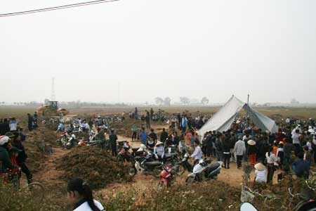Hàng ngàn người dân ùn ùn đổ về cánh đồng Chằm thôn Phú Mỹ (xã Ngọc Mỹ, huyên Quốc Oai, Hà Nội) trong vài ngày qua để chiêm bái, thắp hương ngôi mộ cổ vừa được phát hiện.