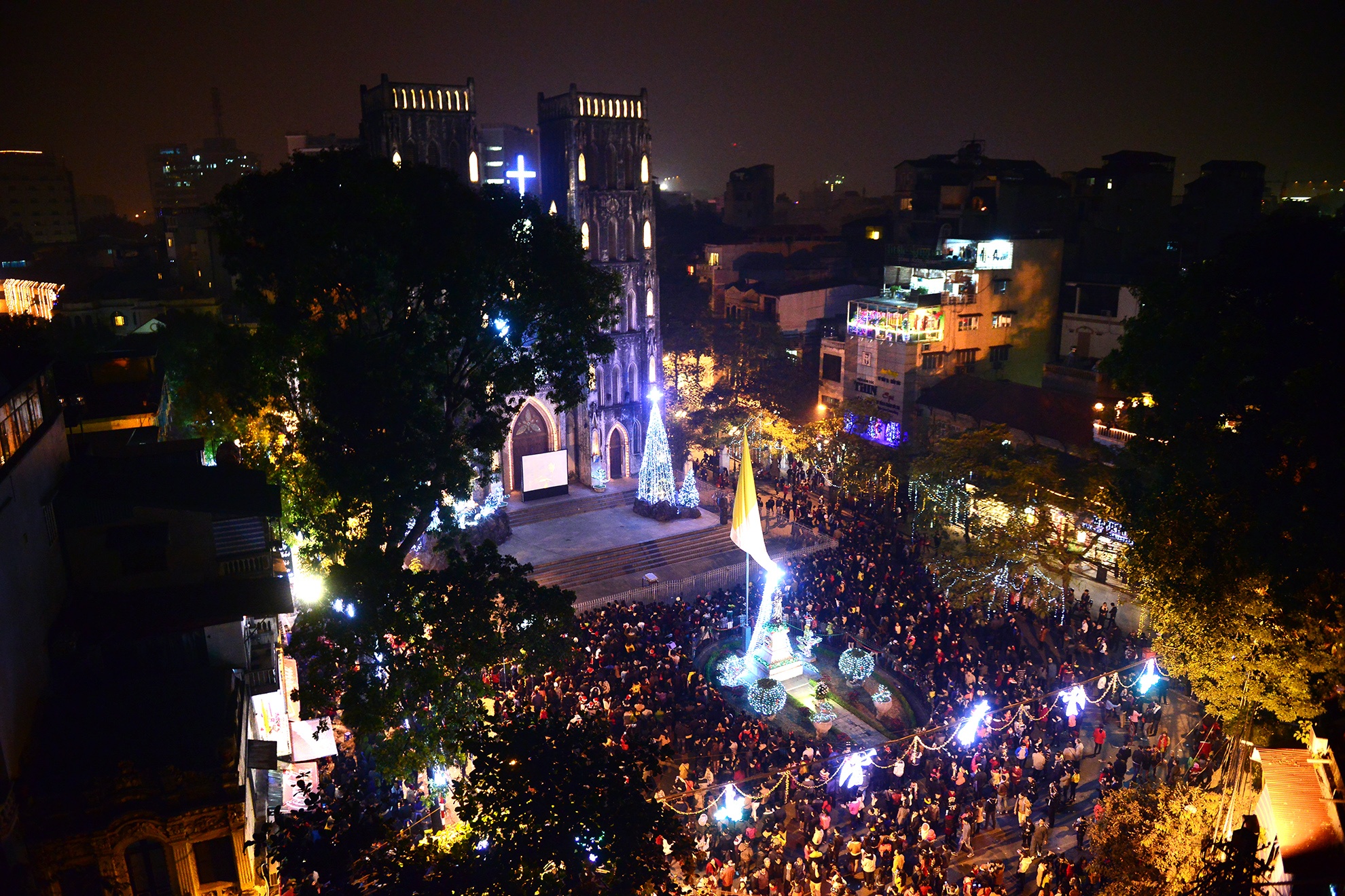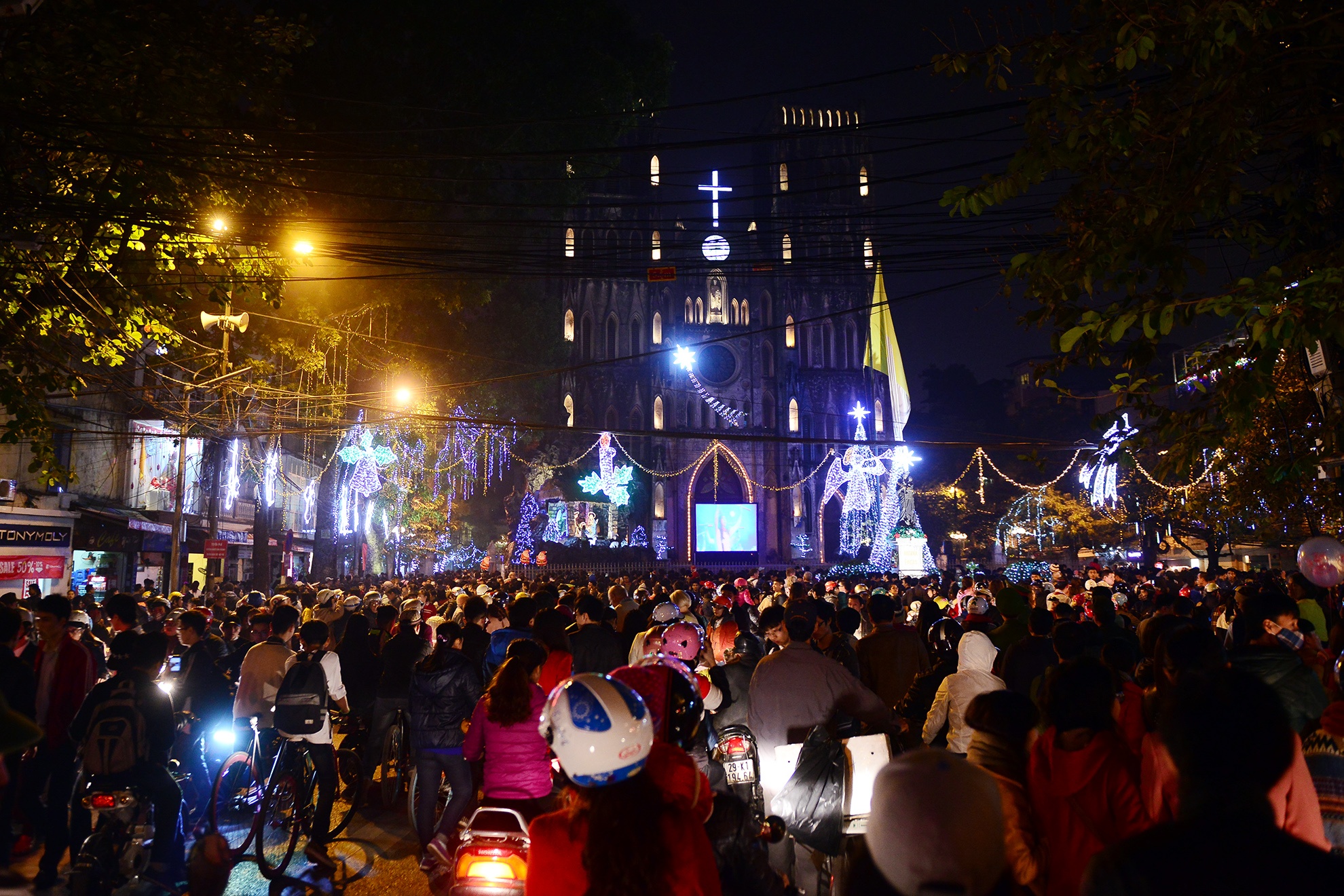| Nhà thờ Lớn Hà Nội là nơi tập trung đông người nhất bắt đầu từ 21h. Ảnh: Tuấn Mark. |