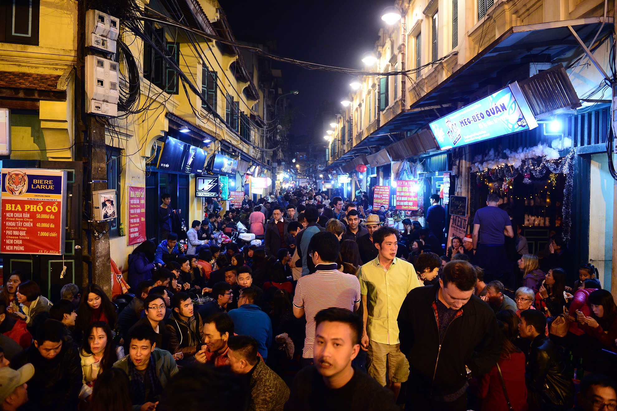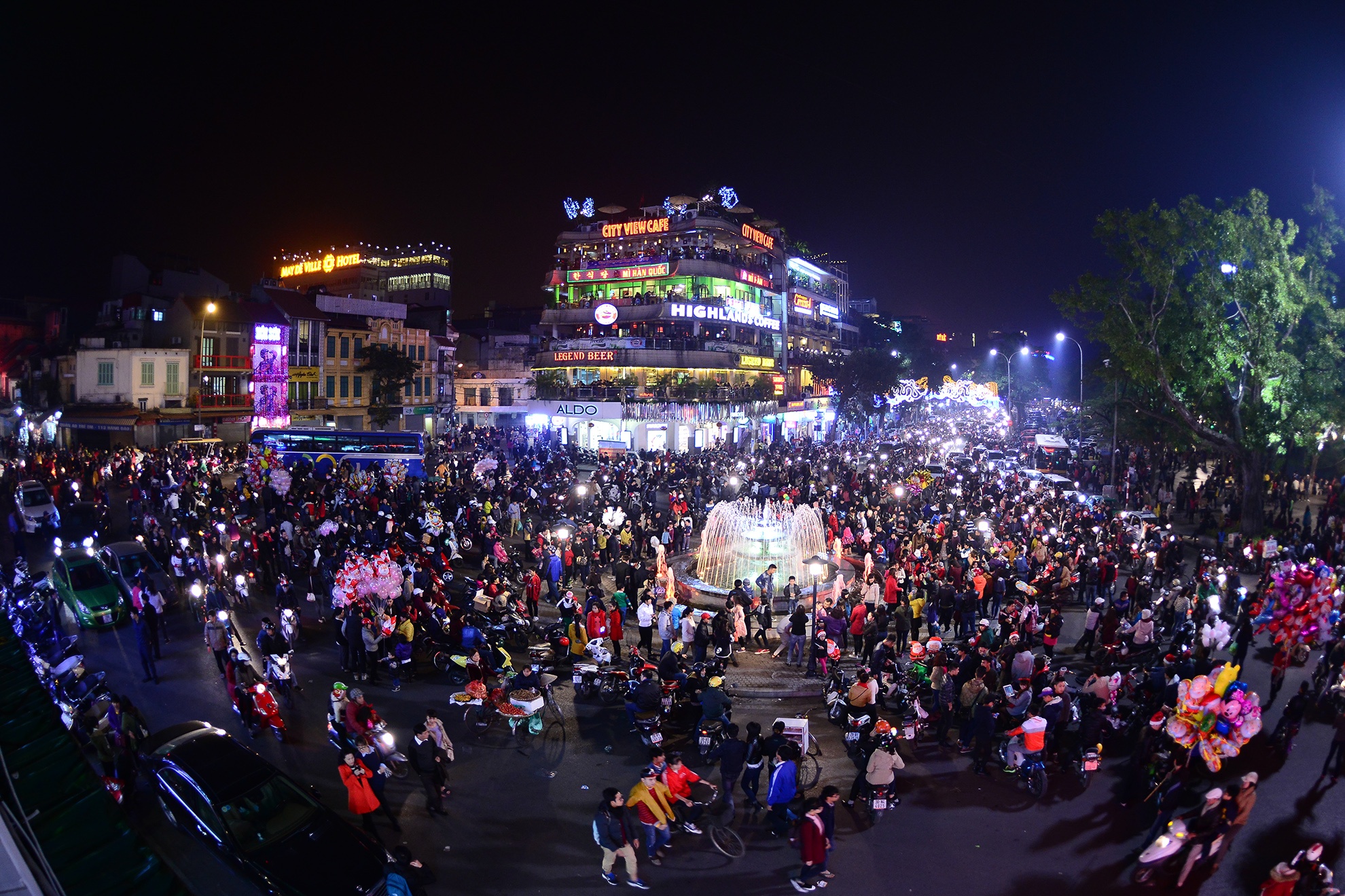 | Từng dòng người đổ về khu vực Quảng trường Đông Kinh Nghĩa Thục. Ảnh: Tuấn Mark. |